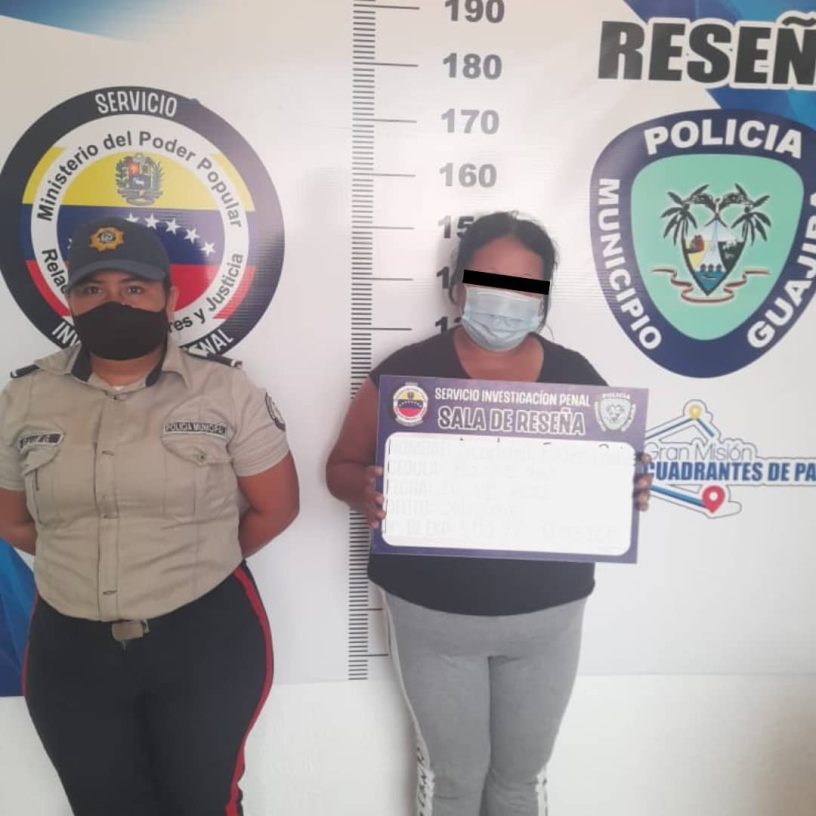 De inmediato fue trasladada al Centro de Coordinación Policial de Municipio Guajira donde quedó a disposición del Ministerio Público.