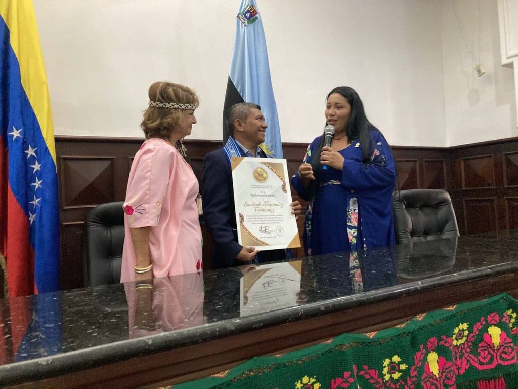 Por su parte, el acto especial se llenó de muchos aplausos al momento en donde la Legisladora de la fracción del Polo Patriótico, Keyla Marín, presentó con un resumen de lucha al Orador de Orden de dicha Sesión, al Jefe (e) del Departamento Sociantropológicos de la Universidad del Zulia, Emelindro Fernández Fernández, quien además fue condecorado con un Botón al Mérito en su Única Clase, por su trayectoria en sus conocimientos y como defensor de los pueblos originarios.