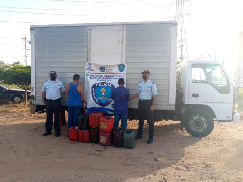 Los sujetos se desplazaban en un camión de carga tipo cava Chevrolet, color blanco, a quienes los oficiales le dieron la voz de alto, al realizar la inspección al vehículo, se encontraron los bidones con el combustible contentivo de 20 litros cada uno, llevando 180 litros del carburante, ante las interrogatorias, éstos no lograron justificar la presencia del producto, quedando detenidos de inmediato, por tráfico ilegal de combustible, presunto contrabando, quedando a disposición de la Fiscalía N⁰ 48 del Ministerio Público.