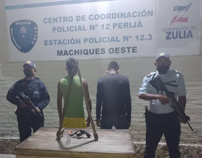 Inmediatamente los Cpez activaron un cerco de seguridad, logrando capturar a González Montiel -extrabajador de la finca- y Pushaina Uriana, quienes fueron señalados por una de las víctimas de ser parte de los responsables del hecho, al momento de realizarles una inspección corporal se les incautó un arma de fuego, tipo revólver, dos hachas y un machete.