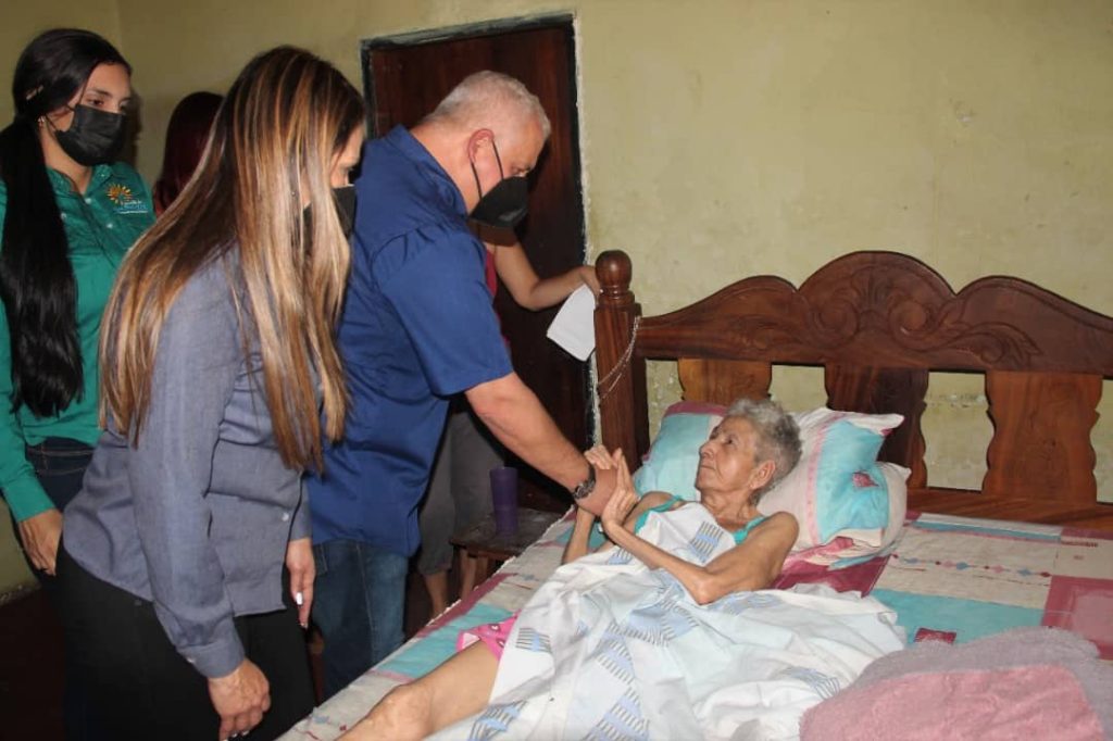 «Gracias por escuchar mi llamado, su visita y apoyo el día de hoy trajo esperanzas a mi casa», manifestó conmovida la esposa del beneficiario, Humberto Muñoz de 79 años de edad, al recibir el donativo de silla de rueda de la mano del Alcalde, en la parroquia Domitila Flores.