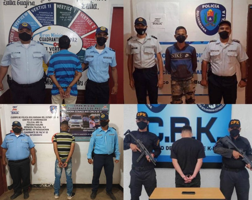 Durante operativos de seguridad, por distintos sectores de los municipios Guajira y Maracaibo, fueron capturados cuatro individuos requeridos por la justicia venezolana, información que se conoció por el C/J Sergio Villasmil, director general del Cuerpo de Policía del estado Zulia (Cpez).