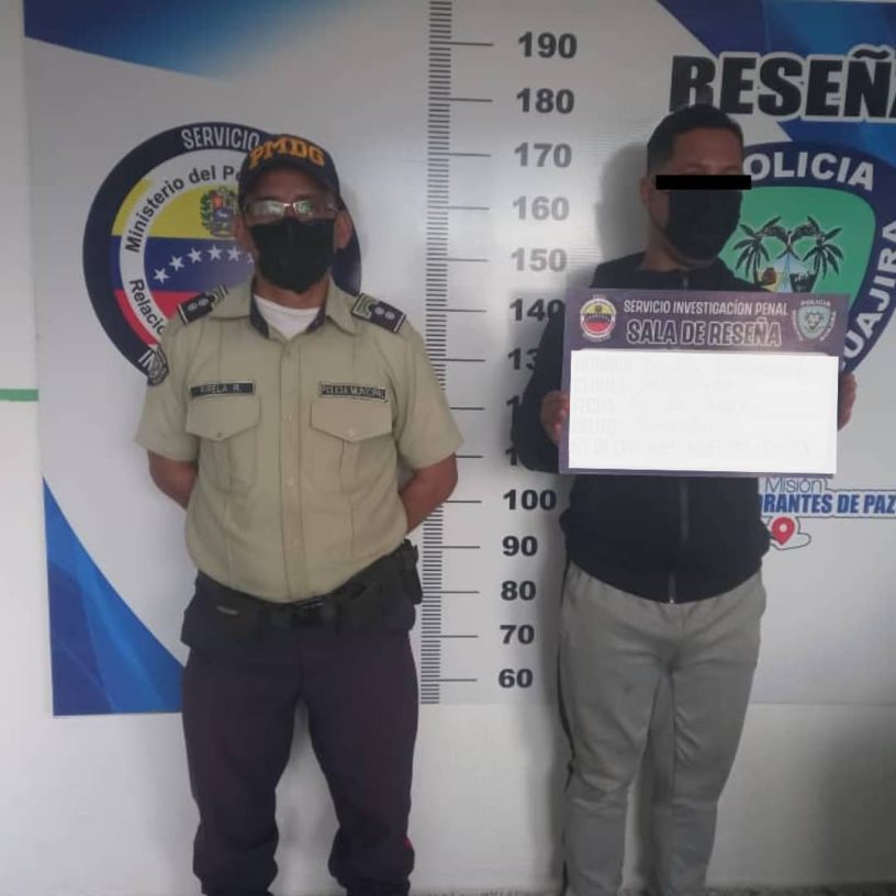 De inmediato fue trasladado al Centro de Coordinación Policial del Municipio Indígena Guajira donde quedó a disposición del Ministerio Público.