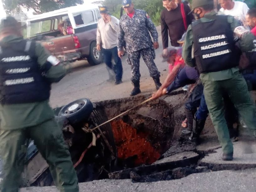 Asimismo, nos reportan que tras ceder la carretera, un vehículo en horas de la madrugada cayó al vacío, funcionarios de protección civil ya estarían en el lugar para resguardar el área.