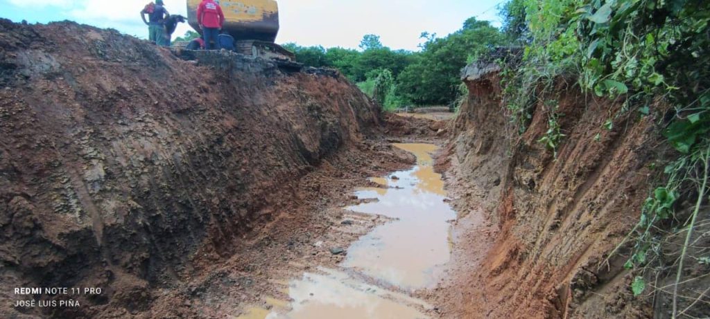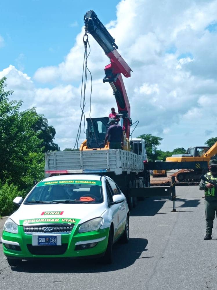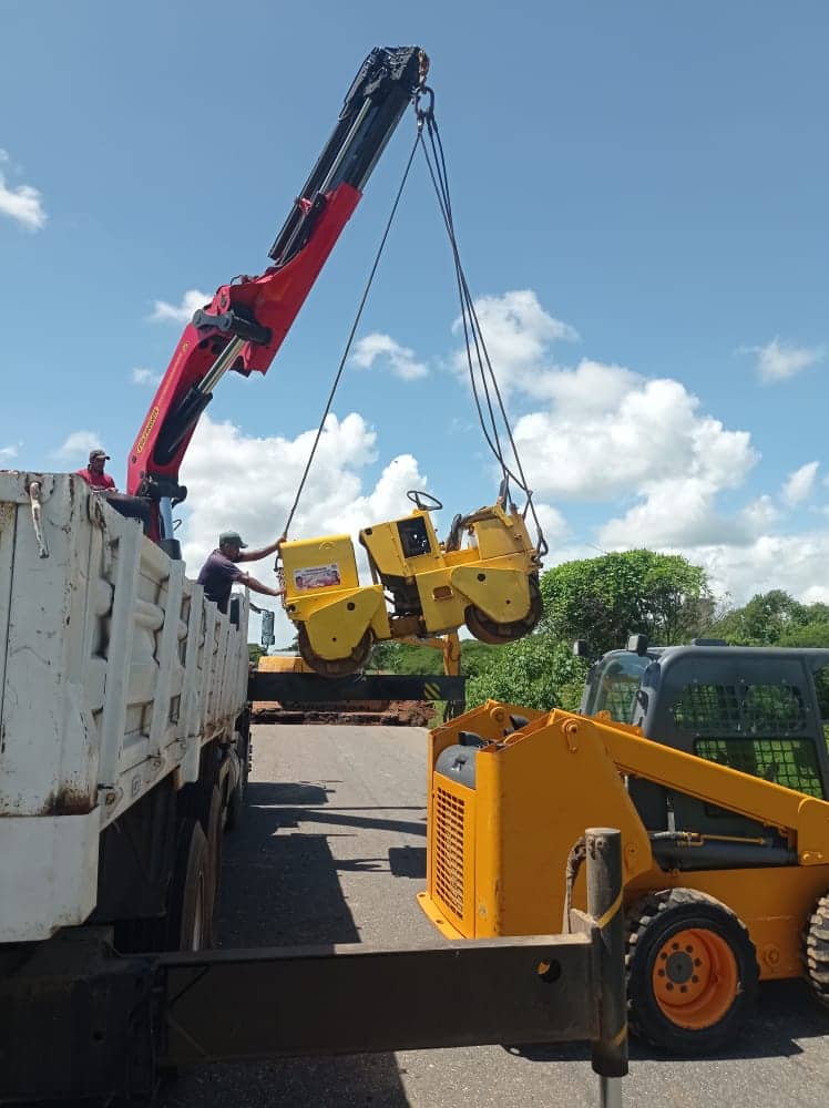 Como parte de los trabajos para solventar la ruptura de esta importante vialidad, se trasladaron varias maquinarias pesadas al lugar, entre ellas un mini shower, una grúa para montacarga y dos gandolas con relleno para ejecutar la obra, seguidamente se colocará un tubo por debajo de este primer tramo para el drenaje del agua y proceder a rellenar el área afectada, luego compactar y por último asfaltar, asimismo se continuará en el segundo tramo que fue afectado en esta vía, donde también se realizará un trabajo parecido.