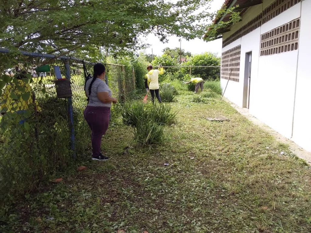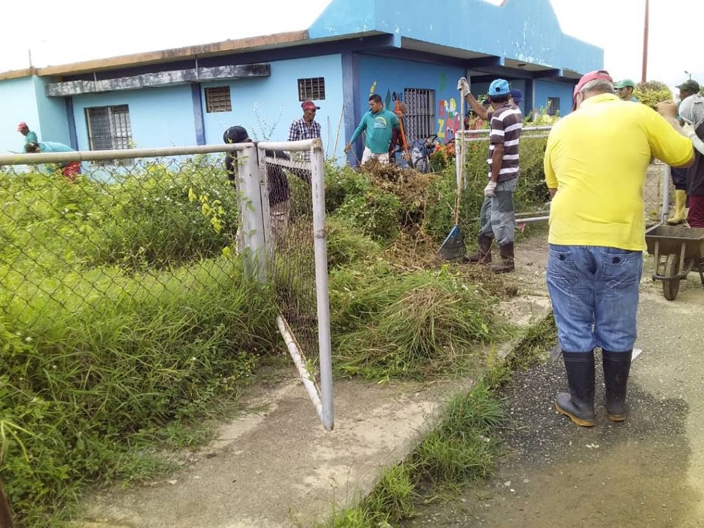 Además, esta semana se dió continuidad a las labores de mantenimiento de las áreas verdes en la U.E Cristóbal Rojas, Preescolar Fundación «Ezequiel Cianci», el Centro Educativo Inicial Bolivariano Arturo Michilena y en la U.E Fe y Alegría «San Juan Bosco» se apoyó con la recolección de la maleza.