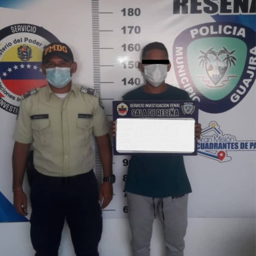 De inmediato fue trasladado al Centro de Coordinación Policial del Municipio Indígena Guajira donde quedó a disposición de la Fiscalía militar vigésima primera con competencia Nacional.
