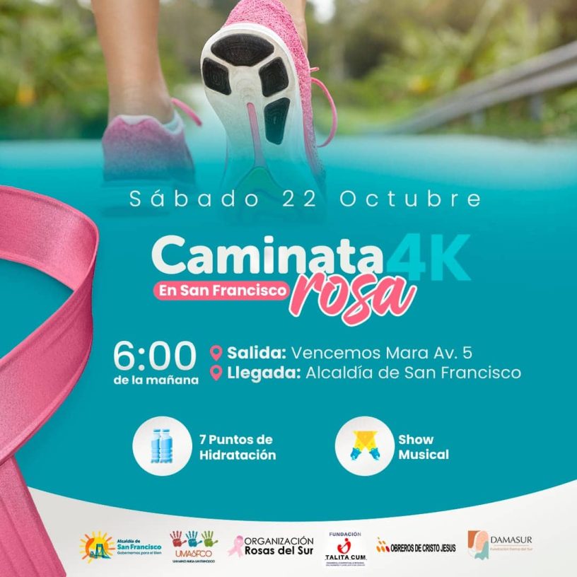 - Sábado 22. «Caminata Rosa» desde las 6:00 am. Punto de salida desde Vencemos Mara av. 5 hasta el bulevar de la Coromoto.