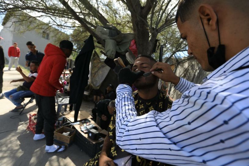 Migrantes venezolanos varados en la frontera norte de México, en Ciudad Juárez, han encontrado en el oficio de barberos una forma de ganarse la vida tras un mes de la nueva política estadounidense para controlar la migración de Venezuela.