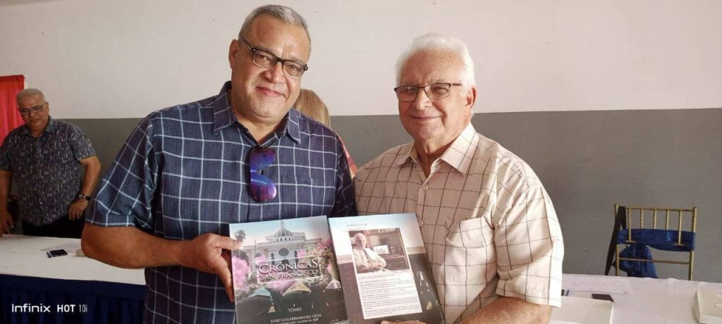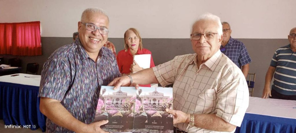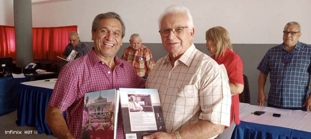 El profesor Julio Fernández, aprovechó la oportunidad para obsequiar a los demás miembros del jurado, el libro de su autoría «Crónicas de San Francisco», como recuerdo de estos gratos momentos fundamentales para este evento.