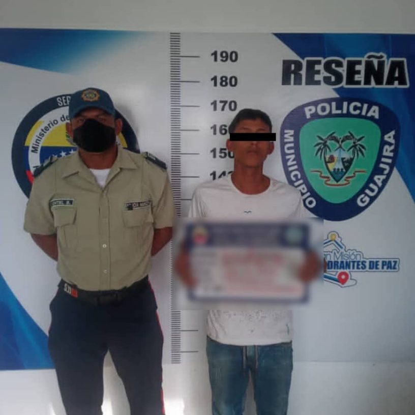 De inmediato fue trasladado al Centro de Coordinación Policial del Municipio Indígena Guajira, donde quedó a disposición del Ministerio Público.