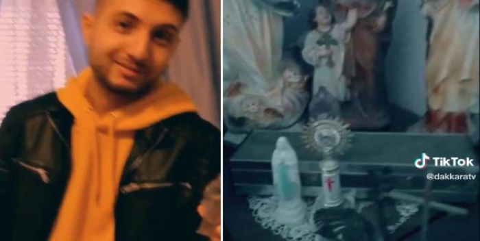«Llego a casa de mi abuela, me fijo en los santos…», comienza diciendo en su vídeo de TikTok, que ya acumula más de 3 millones de visualizaciones. En las imágenes se le ve cogiendo una de las figuras semitransparentes, la de un hombre con túnica y capucha que tiene sus manos entrelazadas. Y, aunque por la descripción podría pasar por un santo, lo cierto es que es todo lo contrario.