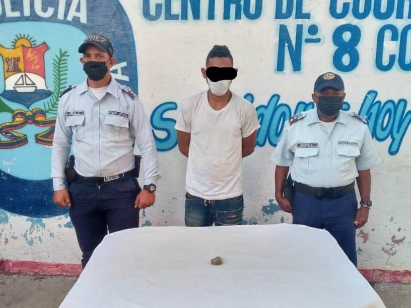En un caso similar patrulleros del Centro de Coordinación Policial Col-Norte, aprehendieron a David José González González de 24 años de edad, con un envoltorio de presunta marihuana con un peso de 15 gramos, el sujeto se encontraba en un paraje solitario del barrio Gran Mariscal, parroquia Punta Gorda, municipio Cabimas; por disposición del Ministerio Público ambos sujetos quedaron en cada comando policial.