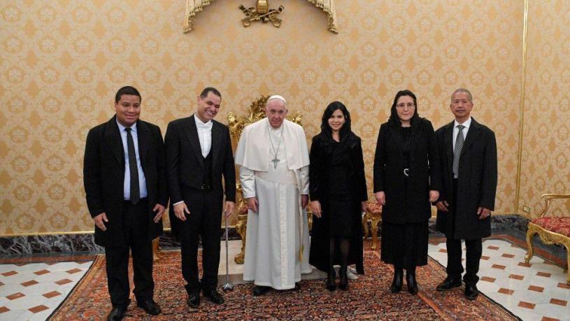 En la mañana de este viernes 9 de diciembre, el Papa Francisco recibió en el Palacio Apostólico del Vaticano al Dr. Ian Carlos Torres Parra, con motivo de la presentación de sus Cartas Credenciales que lo acreditan como Embajador Extraordinario y Plenipotenciario de la República Bolivariana de Venezuela ante la Santa Sede.