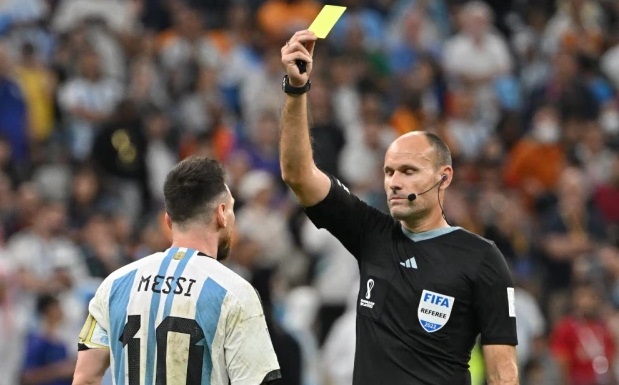 Había reclamado Messi durante el partido varias faltas que no le señalaron y pese a que Mateu le perdonó una amarilla por una clara mano, en un acto instintivo que no castigó, acabó siendo uno de los nueve internacionales argentinos amonestados por protestar enérgicamente los diez minutos de tiempo añadido en los que llegó en la última jugada el empate de Países Bajos que provocó la prórroga.