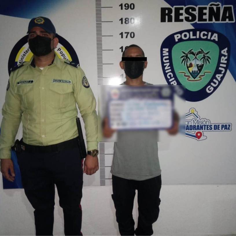 Este sábado, en horas de la noche, funcionarios del Centro de Coordinación de la Policía Municipal de la Guajira detuvieron a Elías Contreras, de 33 años de edad, por encontrarse requerido ante el Ministerio Público, así lo dio a conocer el C/J, Dr. Alexander Beltrán director general de PoliGuajira.