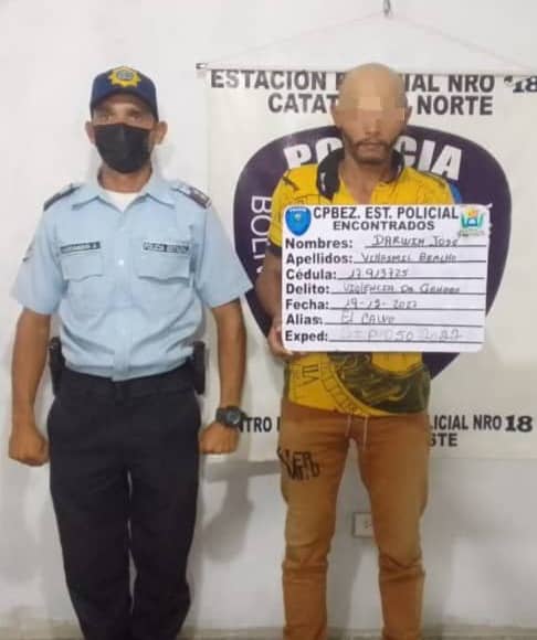 Por otra parte en el caserío Valderrama, municipio Catatumbo, uniformados del Centro de Coordinación Policial Catatumbo Norte arrestaron a Darwin José Villasmil Bracho de 34 años de edad, por golpear con los puños a una dama, y causarle hematomas en el miembro inferior izquierdo en región del muslo y en el miembro superior derecho a nivel de radio y cubito.