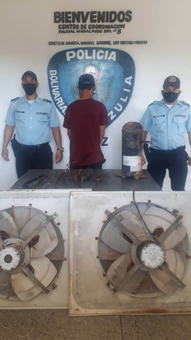 El C/J Sergio Villasmil Rondón director general del Cuerpo de Policía del estado Zulia (Cpez), indicó que el hombre había logrado desprender dos aspas, dos motores de ventilador, un filtro de aires acondicionados y varios trozos de metal.