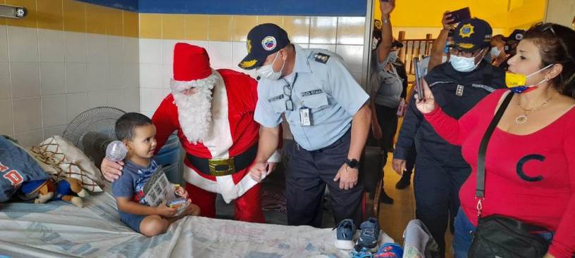 Los niños del área de pediatría del Hospital Dr. Pedro Iturbe (General del Sur) recibieron la visita de oficiales del Cuerpo de Policía del estado Zulia (Cpez), cargados de regalos, golosinas y sonrisas.