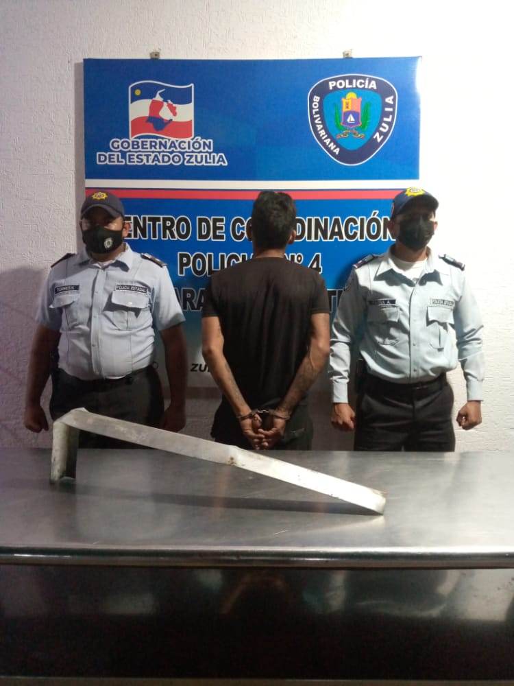 Funcionarios del Cuerpo de Policía adscritos a la delegación de Maracaibo Oeste detuvieron a un sujeto quien agredió a su pareja con una lámina de aluminio.