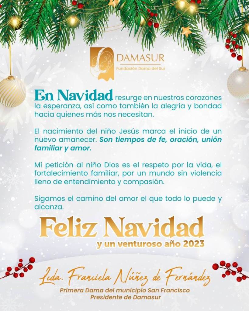Regionales Damasur y la Primera Dama del municipio San Francisco les desea una feliz navidad y un venturoso año 2023 Fecha: 24 diciembre, 2022Autor/a: Crítica24 0 Comentarios Comparte esto: Compartir en X (Se abre en una ventana nueva) X Comparte en Facebook (Se abre en una ventana nueva) Facebook Compartir en LinkedIn (Se abre en una ventana nueva) LinkedIn Compartir en Telegram (Se abre en una ventana nueva) Telegram Compartir en WhatsApp (Se abre en una ventana nueva) WhatsApp Me gusta Cargando...