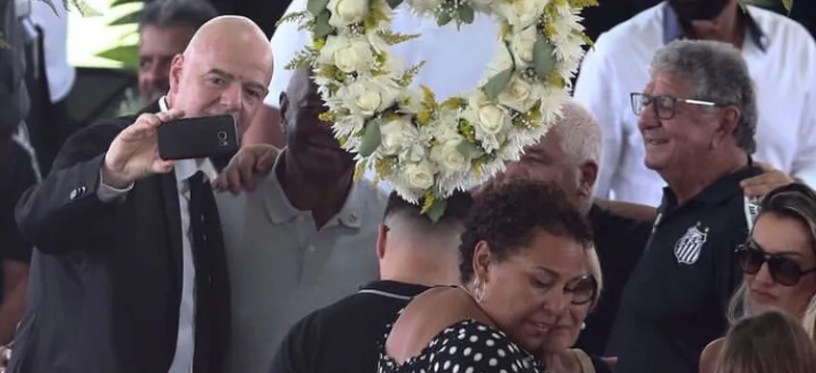 El presidente de la FIFA Gianni Infantino, de 52 años, fue fotografiado ofreciendo sus condolencias a la devastada viuda de Pelé, Marcia Aoki. Poco después de hacerlo, apareció sonriendo para una selfie junto al ataúd de Pelé. Infantino se estaba tomando una foto junto a Lima, excompañero de Pelé en el Santos.