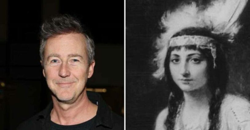 El actor Edward Norton descubrió que la nativa americana Pocahontas (1595-1617), hija del líder del territorio Powhatan, es su duodécima bisabuela.