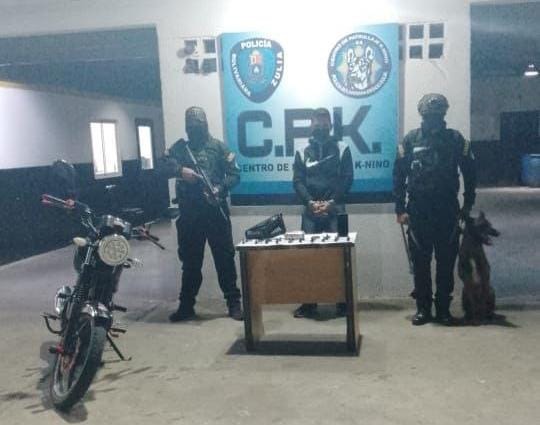 El hombre tenía en el cinto del pantalón un facsímil de arma de fuego y en el maniobro izquierdo de la moto llevaba una bolsas con dos envoltorios con restos vegetales de presunta marihuana con un peso de 296 gramos, asimismo presentó registró policial por Robo Genérico y Aprovechamiento de objetos robados ambos ante la subdelegación del Cuerpo de Investigaciones Científicas Penales y Criminalística (Cicpc) de Maracaibo, desde el año 2019.