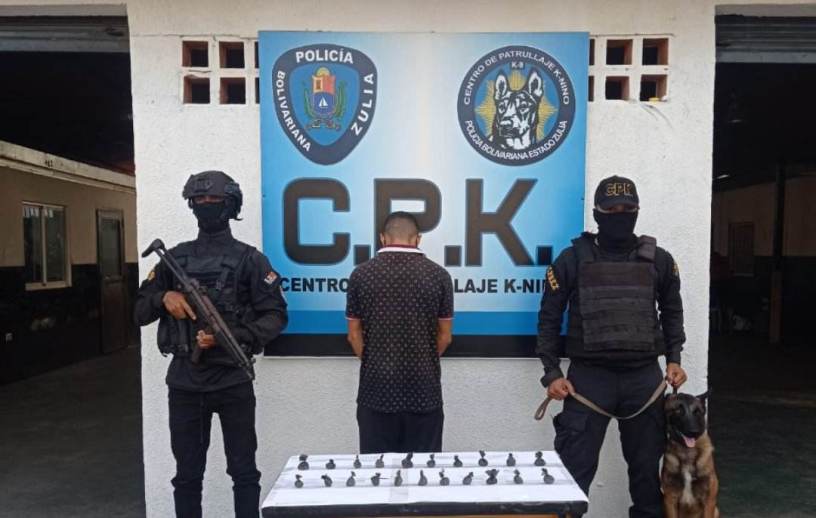 Funcionarios del Cuerpo de Policía del estado Zulia, adscritos al Centro de Patrullaje K-NINO (CPK), detuvieron a un sujeto de 29 años, quien tenía en su poder 21 envoltorios de presunta marihuana en los bolsillos de su pantalón.