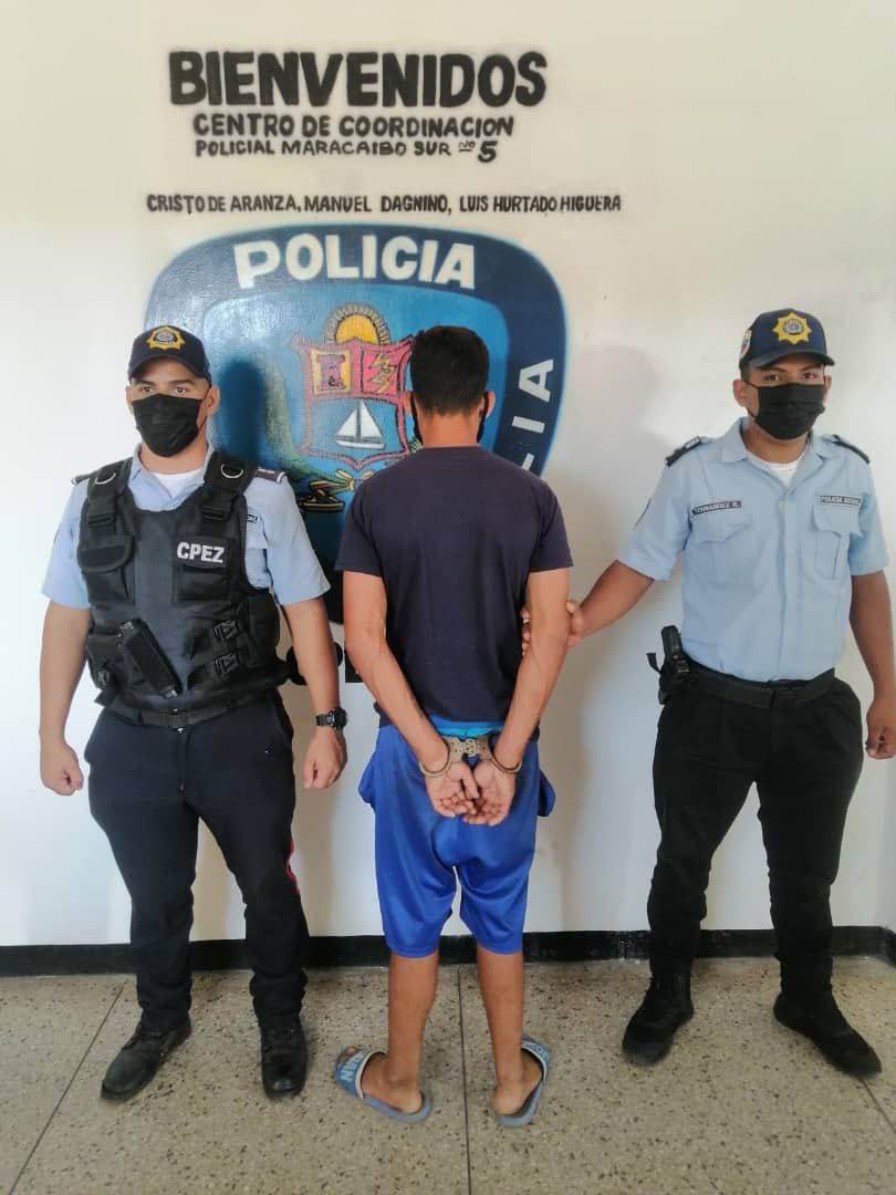 Por último en el barrio María Angélica de Lusinchi, parroquia Luis Hurtado Higuera, municipio Maracaibo capturaron a Yoiran José Villalobos Aguirre alias el «Gringo» de 30 años por violencia contra su pareja sentimental.