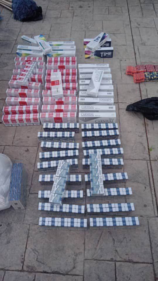 Se les incautó 100 blíster Ibuprofeno de 800 miligramos; 50 blíster de Amoxicilina de 500 miligramos; 60 cartones de 10 cajetillas de cigarrillos cada uno; un cartón de fósforos; cinco cajas de bombillos de 50 unidades; 24 lampazos; una caja de Acetona; una caja de pega loca; 120 ganchos de ropas de material plástico; una puerta de hierro; cinco limpia pocetas; cinco destapa pocetas; 24 rastrillos de material plástico grandes; 24 rastrillo de material plástico pequeño; seis paquetes de esponja de alambre; 12 cepillos redondos de peinar pequeños; 12 cepillos de peinar grandes; 72 escoba de barrer; tres poncheras para duchar bebés; un aire de 5 mil BTU marca Condesa; 24 cintas plásticas; dos remas de papel tipo carta; dos docenas de paños de cocina; una docena de cepillos de lavar y 85 estantillos de color negro de 8X8.