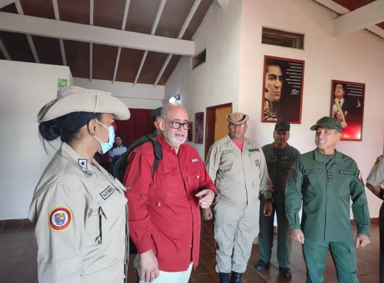 Según información que compartió a través de su usuario en la red social Twitter, a su llegada compartió con funcionarios de la Fuerza Armada Nacional Bolivariana, miembros de la Zona de Desarrollo Integral Zulia; entre ellos el Mayor General Renier Urbaez, comandante de la Región Estratégica de Desarrollo Integral Occidente.