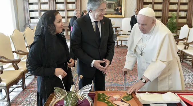 El mandatario ecuatoriano obsequió al pontífice con un retrato de la Virgen de Guadalupe, patrona de América, realizado por un preso menor de edad y en rehabilitación.