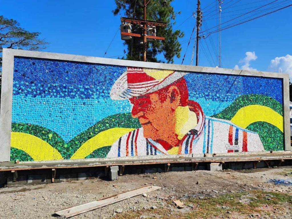Ya están listos los 2 primeros murales del 2023 en la Hacienda La Gloria de Agropecuaria San Simón en Santa Bárbara del Zulia, en donde usamos 45.000 tapas recicladas.