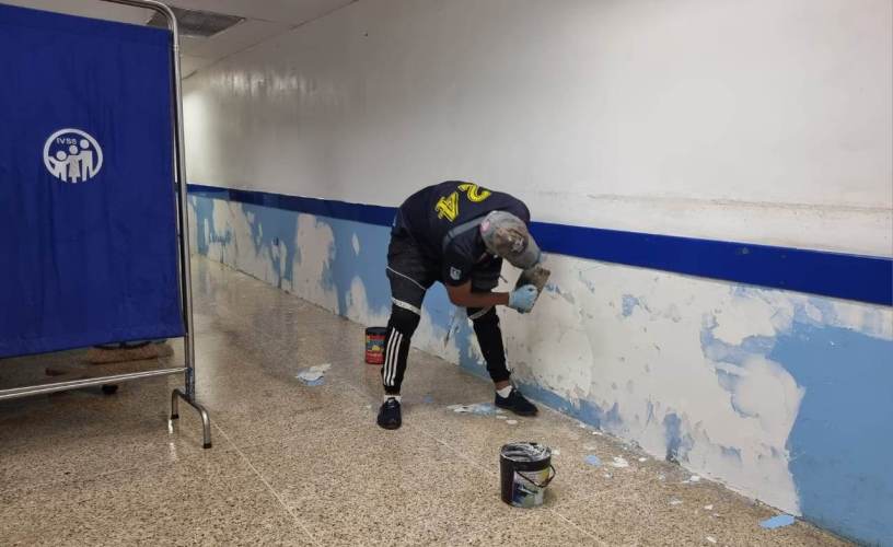 Además de la limpieza, restauración y pintura de paredes, se realizan labores de reparación de mobiliario, camillas médicas, puertas y sistema eléctrico.