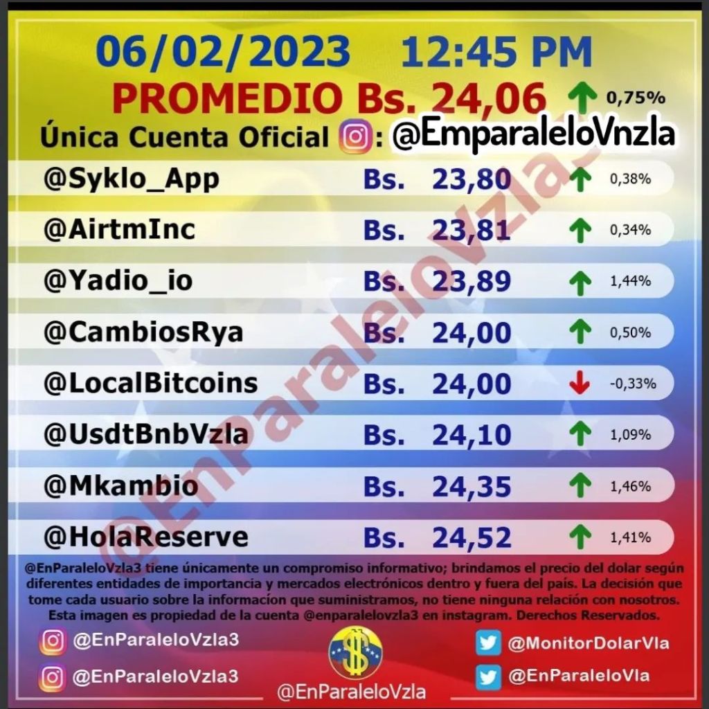 El imbatible de todos los días sigue sin freno: el dólar paralelo cerró la jornada de este lunes 06 de febrero en Bs 24,06