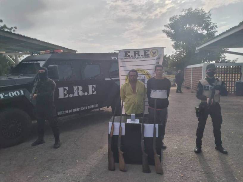 Los hombres se encontraron en una finca de la localidad, quienes al notar la presencia policial emprendieron veloz huida con dirección a la zona enmontada, acción frustrada por los uniformados los cuales realizaron de inmediato un cercado de seguridad logrando capturarlos, al realizarles una inspección corporal se le encontró cuatro proyecciones balística dos calibre 12 y dos calibre 16, se conoció que ambos sujetos pertenecen al Grupo Estructurado de Delincuencia Organizada (GEDO) «Anthony Propiedad».