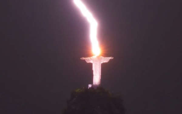 Un fotógrafo brasileño logró captar el momento exacto en el que un rayo impactó sobre la cabeza del monumento Cristo Redentor, en Brasil.