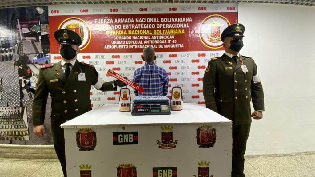 ¡CONTUNDENTE! Un nuevo caso se registró en el Aeropuerto Internacional “Simón Bolívar” de Maiquetía, cuando un sujeto de nacionalidad venezolana pretendía abordar el vuelo Nro. PU-702, de la Aerolínea Plus Ultra, con destino a Madrid (España), con la cantidad de 81 dediles de la presunta droga denominada Cocaína, pero gracias a la rápida acción de los efectivos militares, adscritos al Comando de Zona N°45 La Guaira junto a la Unidad Antidrogas N°45 se logró su captura.