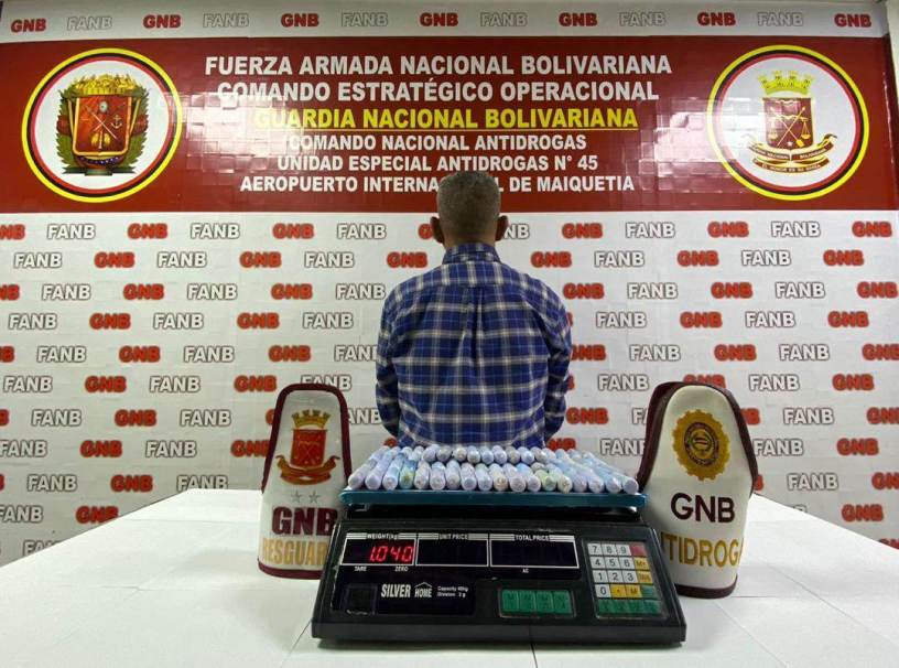 ¡CONTUNDENTE! Un nuevo caso se registró en el Aeropuerto Internacional “Simón Bolívar” de Maiquetía, cuando un sujeto de nacionalidad venezolana pretendía abordar el vuelo Nro. PU-702, de la Aerolínea Plus Ultra, con destino a Madrid (España), con la cantidad de 81 dediles de la presunta droga denominada Cocaína, pero gracias a la rápida acción de los efectivos militares, adscritos al Comando de Zona N°45 La Guaira junto a la Unidad Antidrogas N°45 se logró su captura.