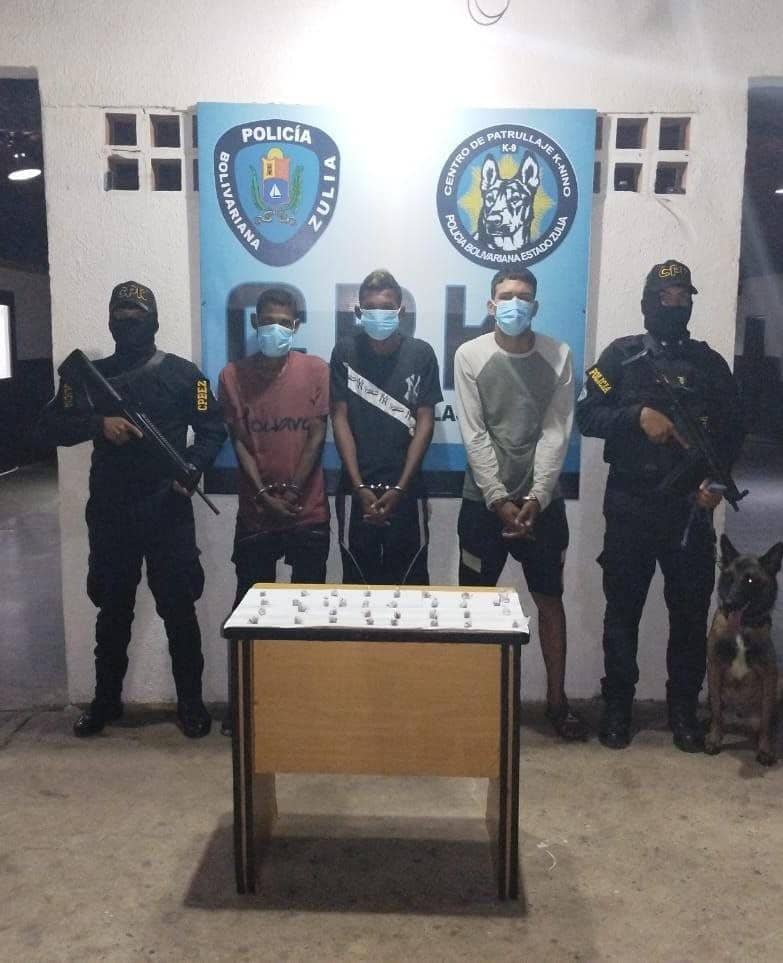 En la parroquia Chiquinquirá fue apresado Emmanuel Enrique Quintero Pérez (23), quien tenía 12 envoltorios con un peso de 16 gramos de presunta marihuana. Por otro lado en la parroquia Olegario Villalobos, fue detenido Carlos Julio Arriechi Añez (30) el cual tenía entre los genitales 27 envoltorios con 19 gramos de presunta marihuana, también en Olegario fue retenido un adolescente de 17 años de edad con 12 envoltorios con presunta marihuana con un peso de 24 gramos.