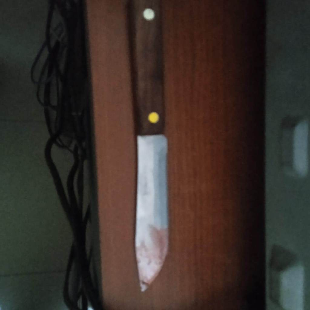 Los funcionarios proceden a realizar un Patrullaje por las adyacencias, y con la descripción aportada por la víctima, se logró ubicar a poco metros de su vivienda, por lo que proceden a restringirlo y a realizar una inspección corporal, en la que se le incautó un arma blanca punzo cortante (cuchillo) de su bolsillo derecho, al cual se le observó marcas evidentes de sangre.