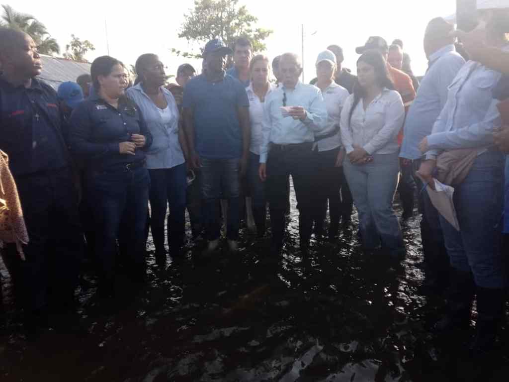 «de punta a punta San Antonio se encuentra afectado por el agua en sus calles, en sus casas, aquí desplegamos un Operativo especial junto al Alcalde Yonys González(…) este Operativo tiene varias vertientes, primero estamos trabajando con maquinaria en la finca Costa Azúl en San Miguel, donde se salió el río, luego atendemos a la población con jornadas de atención médico asistencial(…) Jornadas médicas de manera preventivas para toda la población, además de la dotacion de medicamentos gratuitos asimismo se realiza la vacunación, desinfección de esta localidad».