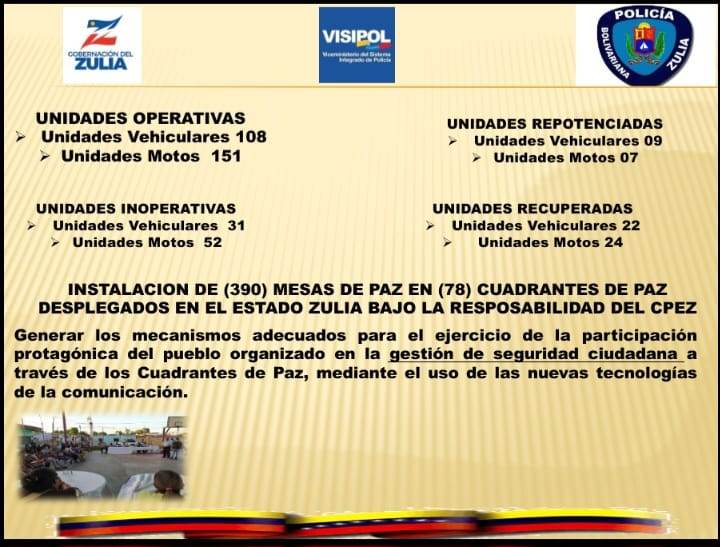 Así como la instalación de 390 Mesas de Paz en 78 Cuadrantes de Paz bajo la responsabilidad del Cuerpo de Policía Bolivariana del estado Zulia.