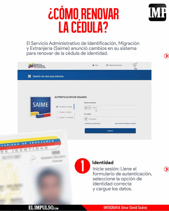 El Servicio Administrativo de Identificación, Migración y Extranjerías (SAIME), publicó en sus redes sociales el procedimiento correspondiente para solicitar o renovar la cédula de identidad, esto como parte de las “adecuaciones tecnológicas para facilitar el proceso a los usuarios”.