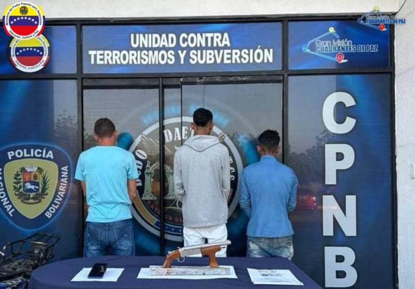 El procedimiento se realizó en el sector Carabobo de la parroquia Domitila Flores, municipio San Francisco, durante un dispositivo de búsqueda y captura, donde una comisión de la Unidad Contraterrorismo y Subversión logró la aprehensión de Pedro Díaz (31), alias «Pedrito», quien presentó historial policial por el delito de robo genérico, Yoglis Pirela (32), alias «Calvin Klein», solicitado por el sistema #Siipol, y Cristian García (22), alias «El Peluca», todos integrantes del Grupo Estructurado de Delincuencia Organizada (GEDO) «El Yiyi», dedicados al robo, extorsión y señalados por la comunidad como azotes de barrio.