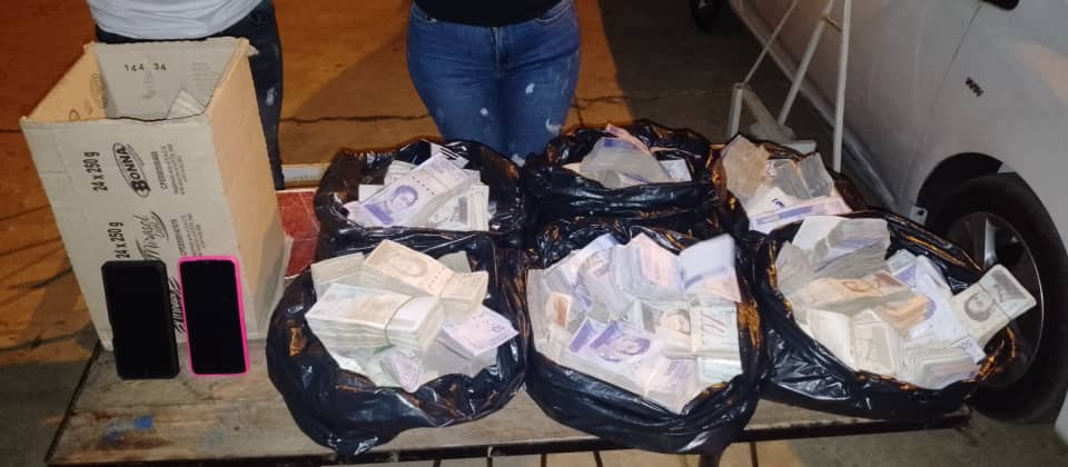 Los detenidos quedaron identificados como Rafael Camargo y Yexi Leal, quienes manifestaron a los investigadores que ese dinero era el producto de la venta de polvorosas respuesta que no coincidía con el dinero encontrado en el vehículo el cual asciende a la cantidad de 85.716.000 Bs y en moneda extranjera equivale a 3.500$.