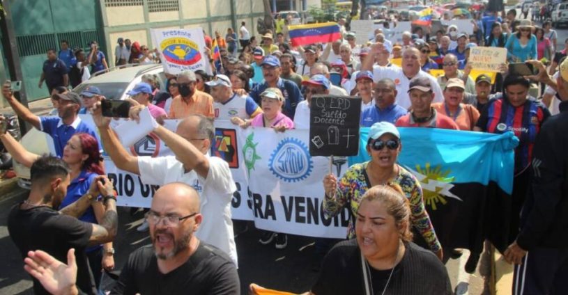 “Con hambre no se educa, ni se aprende”, fue el llamado que difundieron los docentes al informar que no pueden dar clases sin antes recibir sueldos justos y atención a la crisis educativa que afecta a todo el país.