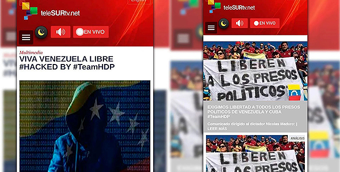 El portal en español del canal de noticias Telesur sufrió un hackeo la noche del martes 11 de abril, con mensajes que pedían la liberación de presos políticos de Venezuela y Cuba.