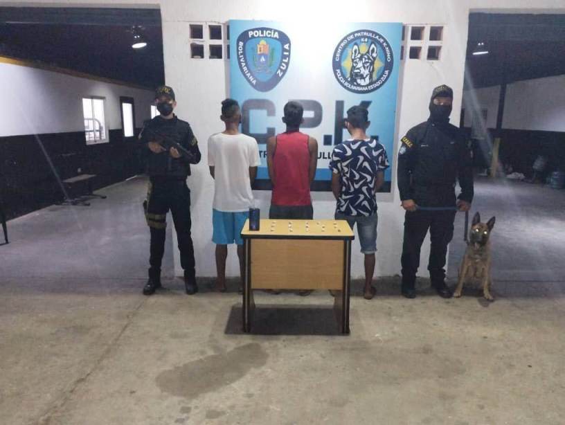 Mientras que en la ciudad de Maracaibo, en dos procedimientos distintos agentes del Patrullaje K-nino, procesaron la aprehensión en el barrio 19 de Abril, parroquia Francisco Eugenio Bustamante, a Luis Manuel Suárez González (22), Andri Enrique Sandoval Pertuz (20) y Roberto Enrique Urdaneta Torrealba de 23 años de edad, quienes tenían diez, dos y tres envoltorios con presunta marihuana; seguidamente en la Curva de Molina, parroquia Venancio Pulgar fue apresado Alexander José Ávila Rodríguez de 24 años, quien tenía once envoltorios con restos vegetales con un peso de 10 gramos. Los casos quedaron en cada comando puestos a disposición del Ministerio Público.